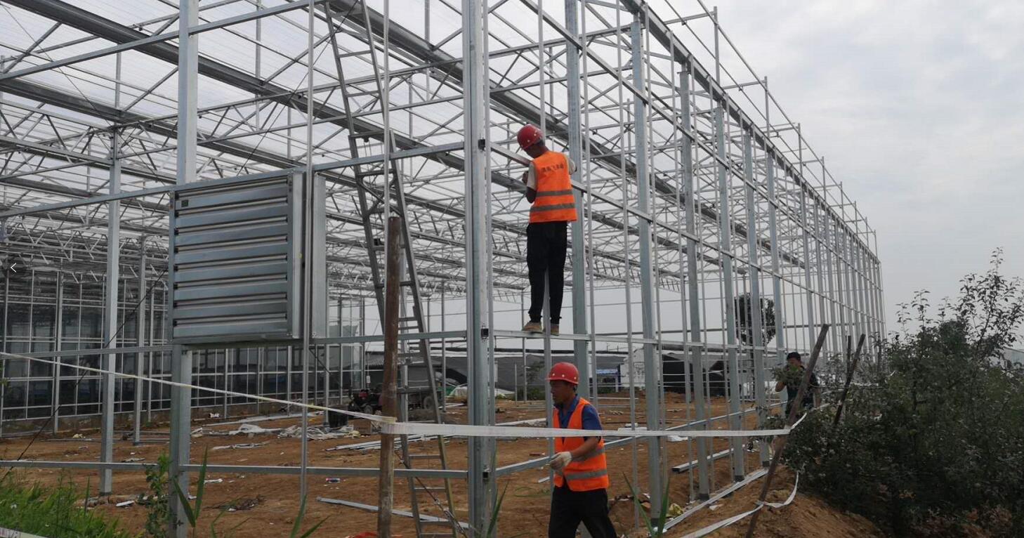 白水縣杜康鎮(zhèn)和園花卉玻璃棚施工現(xiàn)場(chǎng)!